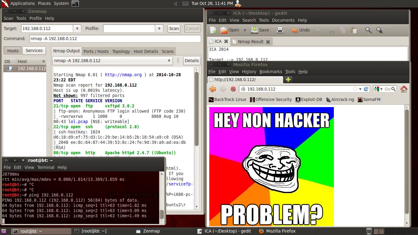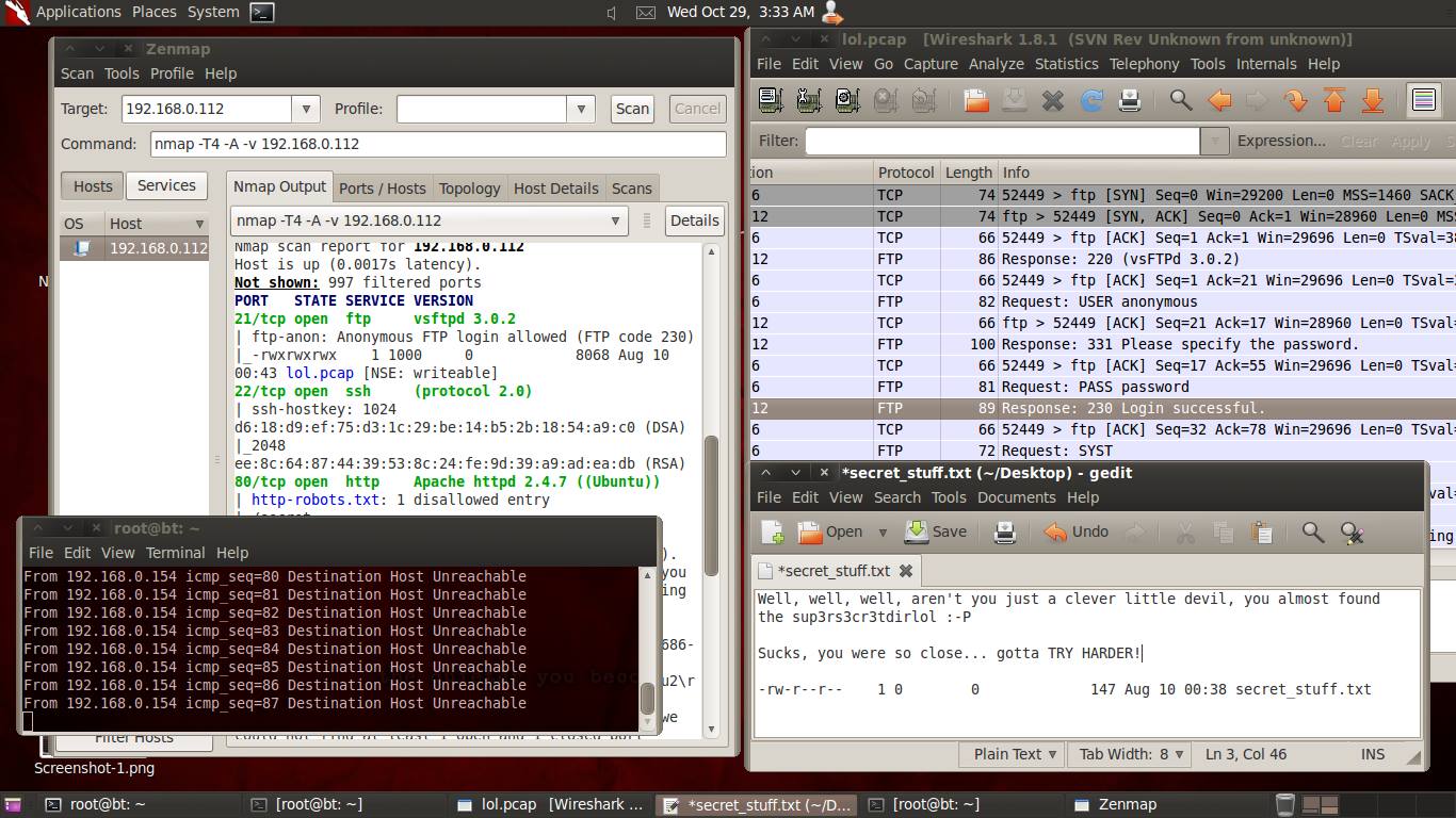 Dengan bermodalkan Linux Backtrack 5 R3 kami harus berbesar hati pulang dengan 'hanya' membawa 1 dari total 3 Flag yang dikompetisikan.